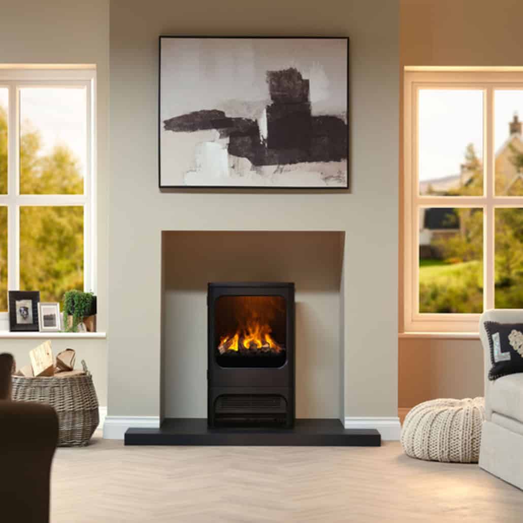 We recommend viewing electric stove designs in person to appreciate their scale, finish and flame presentation. Our Brighouse showroom offers a wide range of contemporary fireplace and stove styles, with guidance available on layout and installation options.